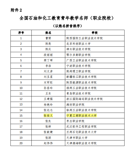 近年来,学校大力弘扬教育家精神,通过实施人才强校战略,着力打造一支师德高尚、业务精湛、结构合理、充满活力的高素质专业化教师队伍。张俊义老师的成功认定,是学校长期重视师资培养、厚植育人沃土结出的硕果。目前,学校有“全国石油和化工教育青年教学名师”3人,“全国石油和化工教育优秀教学团队”1个,“全国石油和化工教育优秀教学管理人员”1人。