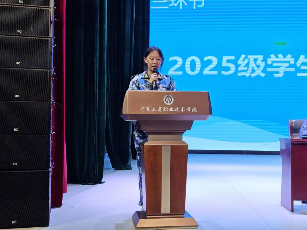2025级学生代表魏晨钰在发言中分享入学感受,表达对专业学习的期待与奋斗决心,展现出新时代大学生昂扬向上的精神风貌。