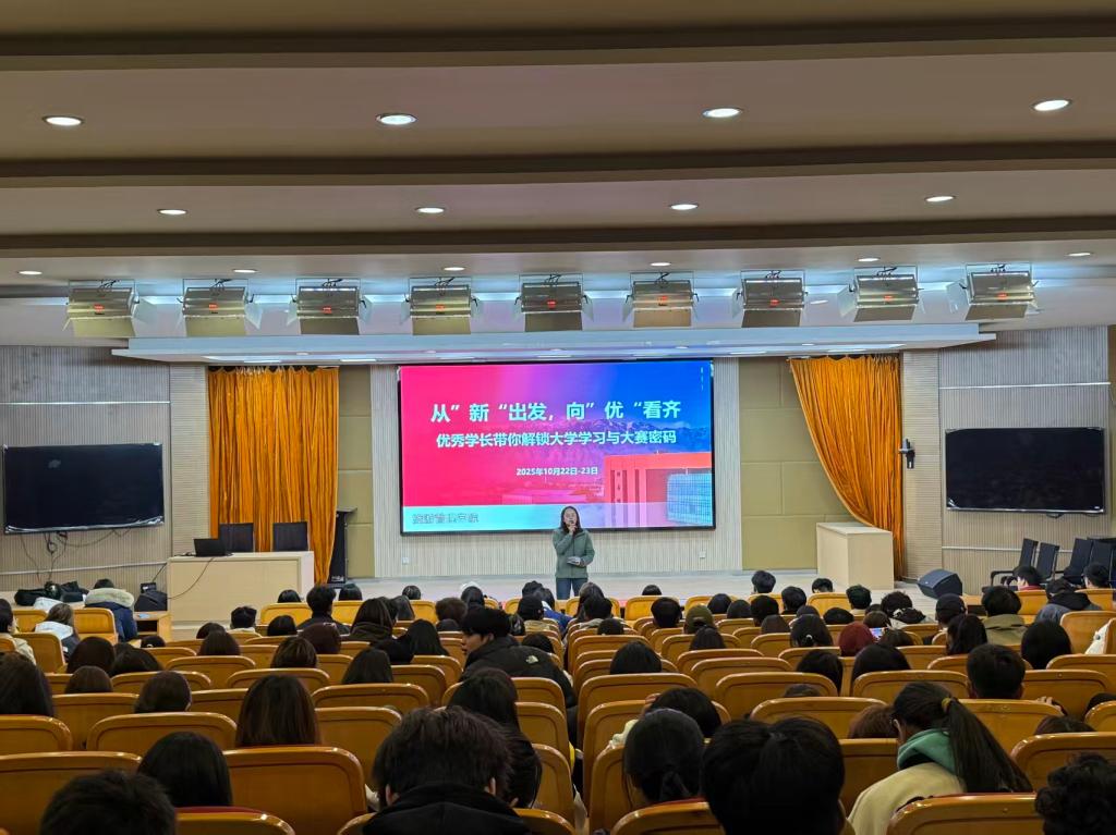 为帮助新生快速破解大学适应难题,明确学习与发展方向,旅游管理学院于10月22日、23日在图书馆一楼报告厅开展“从‘新’出发,向‘优’看齐”优秀学长经验分享活动。活动分两场精准覆盖不同专业新生,以“经验传递”为核心,为新生解锁大学学习与大赛密码。