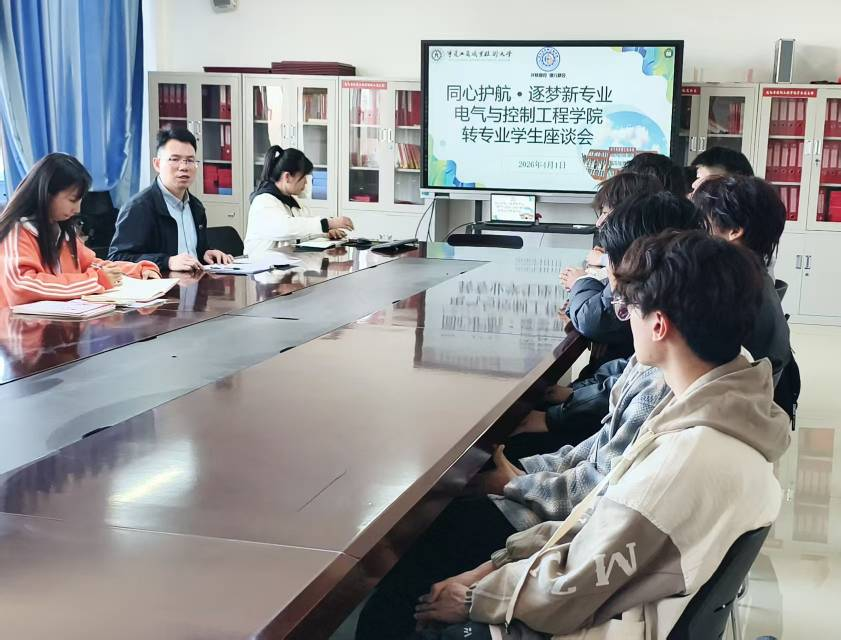 为深入贯彻树立和践行正确政绩观学习教育,坚持以生为本、实干为要,把工作实绩体现在服务学生成长成才上,切实做好转专业学生适应与培养工作,助力学生快速融入新专业、开启学业新征程,近日,电气与控制工程学院在智控楼会议室举办“同心护航逐梦新专业”转专业学生座谈会。本学期转入学院的15名2025级学生、学院领导老师及优秀学生代表参会。