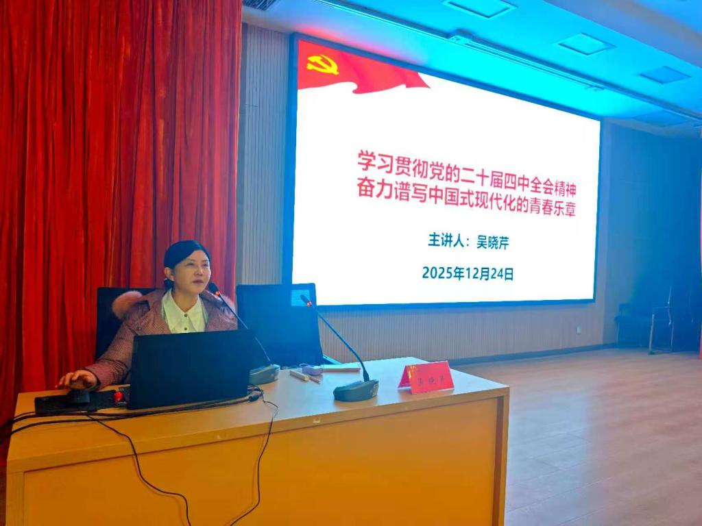 12月24日,旅游管理学院在图书馆报告厅举办“学习贯彻党的二十届四中全会精神,奋力谱写中国式现代化的青春乐章”主题宣讲会。主讲人吴晓芹老师为大一学生深入解读全会精神,引导青年学子在新时代挺膺担当。