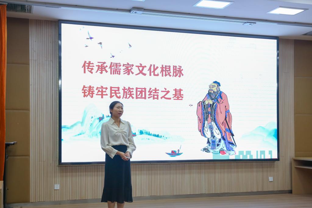 活动首先通过视频展示了中华优秀传统文化在美德、建筑、工匠精神等方面的体现。人文教育学院柴欢老师以“传承儒家文化根脉、铸牢民族团结之基”为主题进行了精彩宣讲;刺绣(香包)非遗传承人、人文教育学院吕银平老师的《指尖上的文化艺韵》分享,体现了中华优秀传统文化的多样性;同学们通过朗诵、歌曲、故事等形式,生动诠释了传统文化与美德内涵。