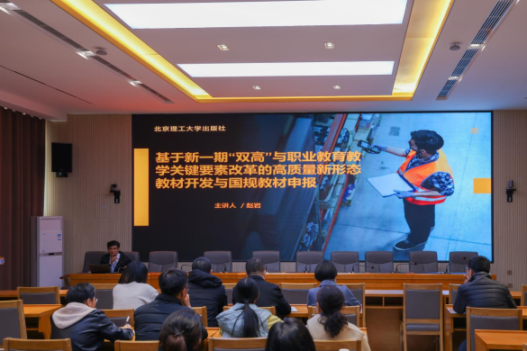赵岩基于新一期“双高”建设任务与职业教育教学关键要素改革要求,深入阐述企业技术专家、学校专业带头人、行业权威专家“三主编”教材开发机制下,教材开发应具备的要素和编写要求;以实际案例详细介绍了不同形态教材的特征和编写规范;按照第二批“十四五”职业教育国家规划教材评审标准,突出讲解高质量国规教材申报材料应具备的特点。此外,还针对数字教材和课程思政融入等方面与我校教师深入交流。最后,北京理工大学出版社依据学校14个专业大类举办样书展,与教师进行现场实际沟通,为我校教材编写提供教材借鉴。