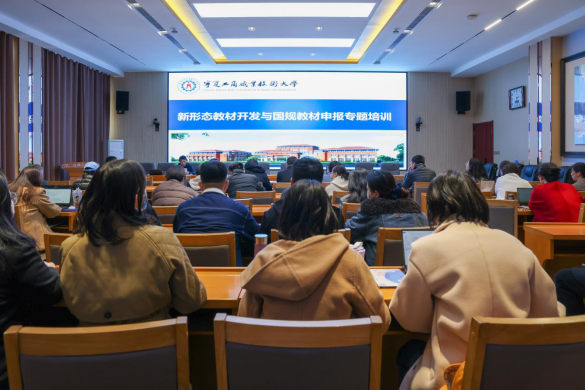 3月17日,为全面落实推进《教育部关于深化职业教育教学关键要素改革的意见》,切实提升教材建设水平,学校特邀请北京理工大学出版社知名主编赵岩开展新形态教材开发与国规教材申报的主题讲座。讲座由教务处副处长李文旭主持,参训人员主要包括各二级学院教学副院长、在编教材项目负责人及团队成员、意向编写教材教师等。