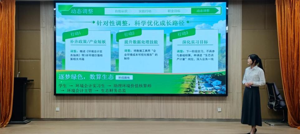 参赛选手涵盖财会金融学院24级和25级在读学子,大赛特设成长赛道与就业赛道两大组别,实现精准分层竞技。大赛伊始,就业赛道的学子们以PPT为媒,全面展示个人专业积累、实践经历与职业愿景,随后接受专业模拟面试测评。该赛道聚焦求职实战能力,重点考察选手与目标职业岗位的适配度、综合素质与专业能力的契合度,以及个人发展路径与就业市场需求的适配性。成长赛道的选手从个人特质剖析、职业环境洞察、职业目标确立到评估调整规划,层层递进地阐述了自己的生涯发展理念与未来职业蓝图。