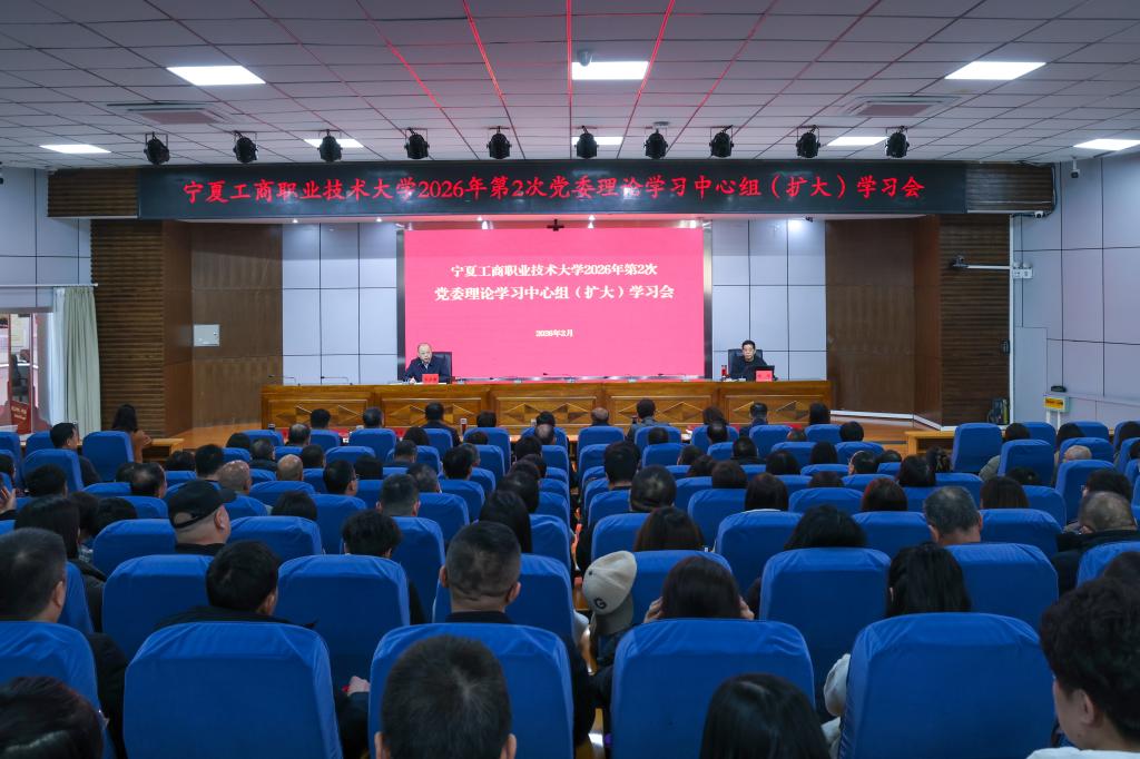 2月27日,学校召开2026年第2次党委理论学习中心组(扩大)学习会,特邀宁夏党委党校(宁夏行政学院)常务副校(院)长郝彤教授作辅导报告,专题学习贯彻党的二十届四中全会精神。党委书记郭少新主持会议,校党委理论学习中心组成员、全体中层干部参加学习。
